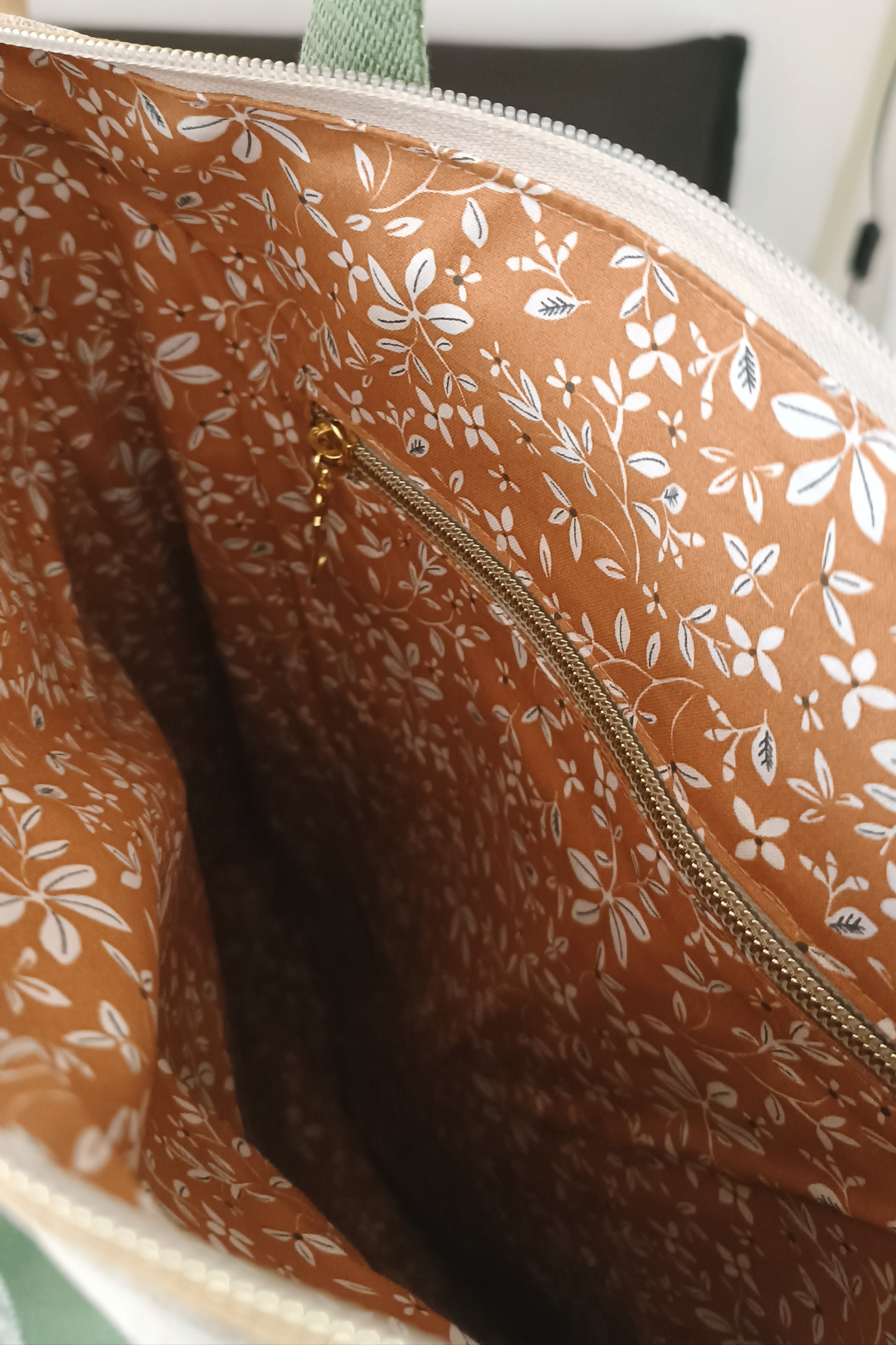 Le Grand Zippé est un joli sac cabas, au format pratique au quotidien. De quoi y ranger téléphone, porte-feuille, pochettes, lunettes, livre de poche et autres petits nécessaires.
